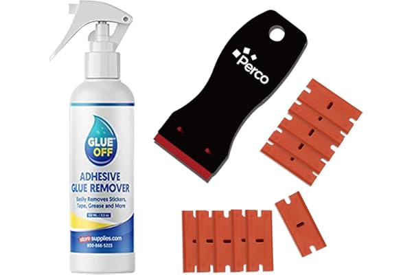 Perco Glue Off Adhesive Remover 3.3 oz & Scraper with Plastic Razor for Removing Labels (Adhesive Remover & Scraper w/Plastic Razor)