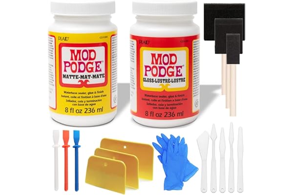 8 Ounce Gloss and Matte Medium Waterproof Sealer, Pixiss Accessory Kit with Foam Brushes, Gloves, Glue Spreaders and More
