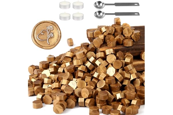 Yoption 360 Pcs Metallic Antique Gold Sealing Wax Beads Set for Wax Seal Stamp with Candles and Melting Spoon