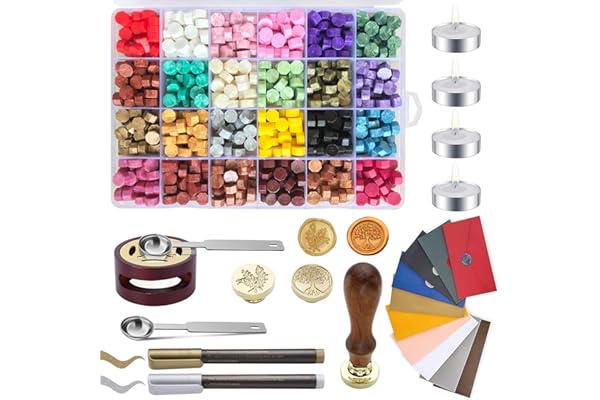 24 Colors and 624 Pcs Wax Seal Beads with Wax Seal Stamp, Sealing Wax Warmer, Wax Seal Metallic Pen and Envelope, Wax Seal Kit for Gift and Decoration
