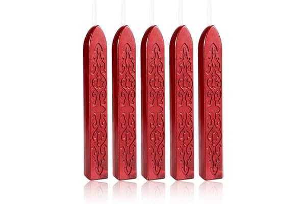 Yoption 5 Pcs Totem Fire Manuscript Wax Seal Sticks with Wicks for Wax Seal Stamp (Metallic Red)