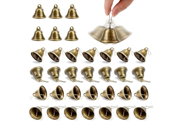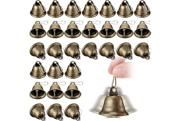 30 Pieces Craft Bells Small Brass Bells for Crafts Vintage Bells with Spring Hooks for Hanging Wind Chimes Making Dog Training Doorbell Christmas Tree Wedding Decor