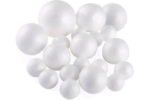 Pllieay 20 Pieces 5 Sizes White Foam Balls Polystyrene Craft Balls Art Decoration Foam Balls for Art