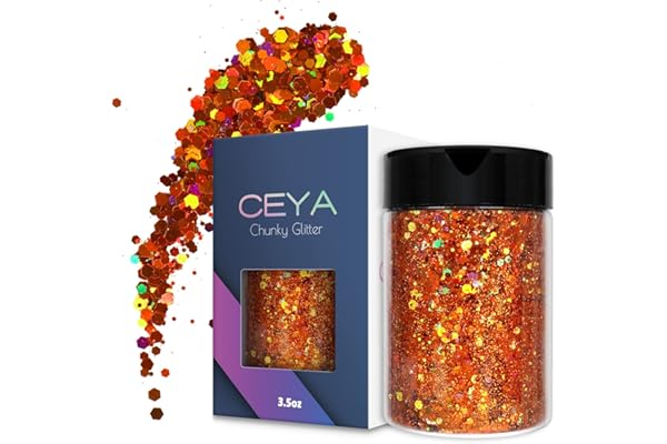 3.5oz/ 100g Orange Craft Glitter Powder Mixed Chunky & Fine Flakes Iridescent Nail Sequins for Nail Art, Hair, Epoxy Resin, Tumblers, Slime, Painting, Festival Decor