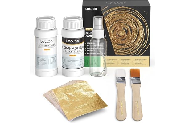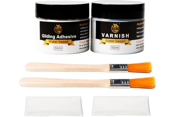 Gilding Adhesive 200ml Set, Water Based Adhesive and Protective Varnish Whit Gold Leaf Sheet 100 pc, for Craft Supplies, Painting, Resin Arts Furniture and Decoration