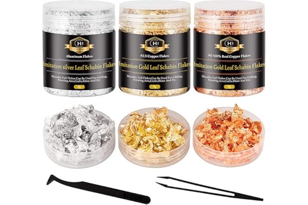 Jewelry Making, Imitation Gold Foil Flakes Metallic Leaf for Nails, Painting, Crafts, Slime and Resin Jewelry Making (Gold, Silver, Copper Colors)