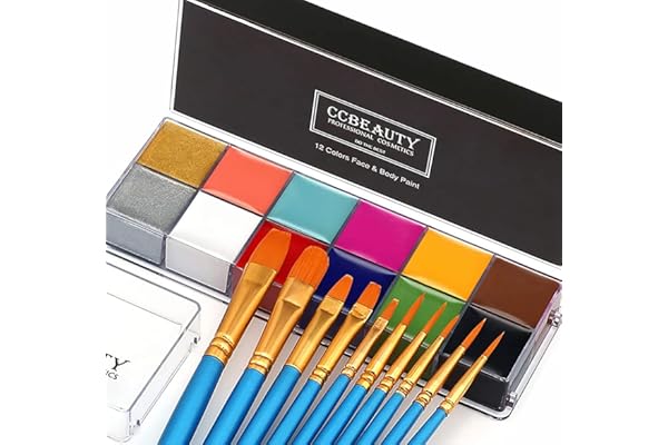 CCbeauty Professional Face Body Paint Oil 12 Colors Halloween Art Party Fancy Makeup Palette Set with 10 Blue Brushes
