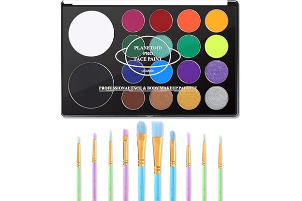 Professional Quality Face & Body Paint, Hypoallergenic Safe & Non-Toxic, Easy to Painting and Washing, Ideal for Halloween Party Face Painting, 15 Colors with Two Brush
