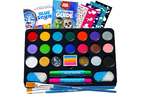 Blue Squid 36 Jumbo 3.25" Face & Body Painting Makeup Crayons, Safe for Sensitive Skin, 8 Metallic & 28 Classic Colors, Great for Birthdays & Halloween Makeup