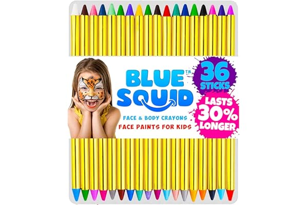 Blue Squid 36 Jumbo 3.25" Face & Body Painting Makeup Crayons, Safe for Sensitive Skin, 8 Metallic & 28 Classic Colors, Great for Birthdays & Halloween Makeup
