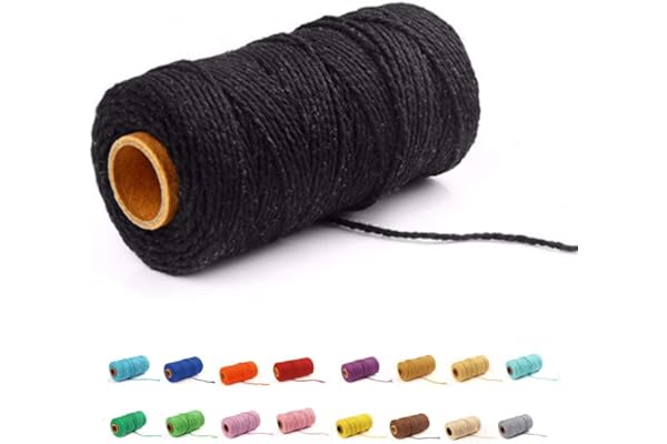 (109 Yards/1.5mm/35 Colors Optional) Macrame Cord Craft Macramé Cotton Baker Twine Craft Making Knitting Cord Rope DIY Wedding Decor Supply Christmas Wrapping String Rope (Black)