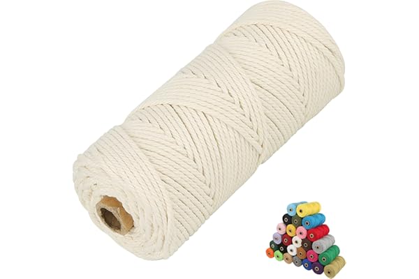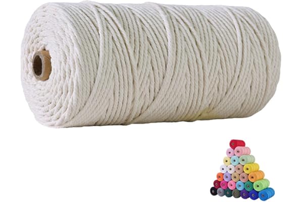 100% Natual Cotton Macrame Rope | 3 Strand Twisted Cotton Cord for Handmade Plant Hanger Wall Hanging Craft Making