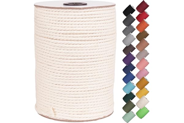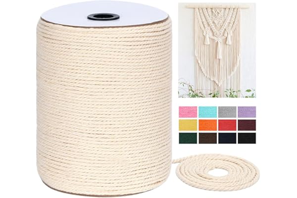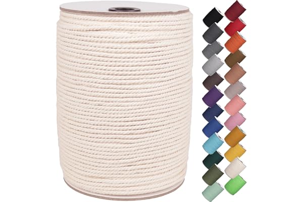 3 Strands Twisted Macrame Cotton Cord for Wall Hanging, Plant Hangers, Crafts, Gift Wrapping and Wedding Decorations