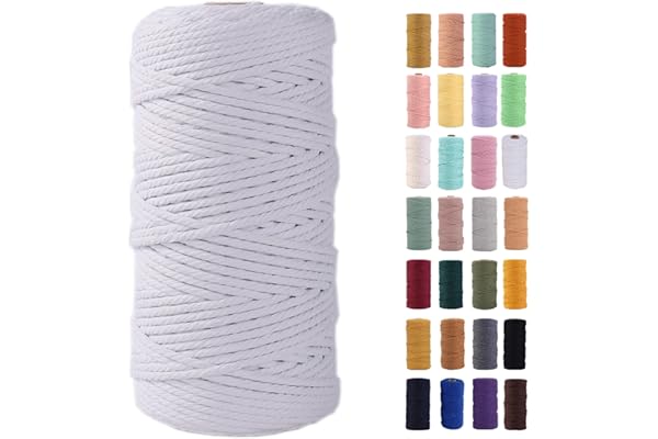 4 Ply Twisted Macrame Yarn, Natural Cotton Cord Perfect Macrame Supplies DIY Crafts Cord (Natural White)