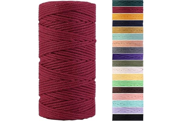 POZEAN 3mm x 220 Yards (About 200m) Cotton Rope, 100% Natural Cotton Macrame Rope for Wall Hanging, Plant Hangers, DIY Crafts Knitting, Christmas Wedding Decorative Projects (Wine Red)