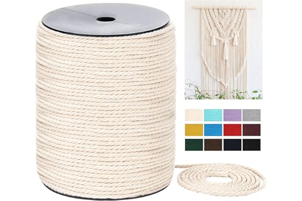 Macrame Cord 4mm x 328Yards(984Feet),Natural Cotton Macrame Rope