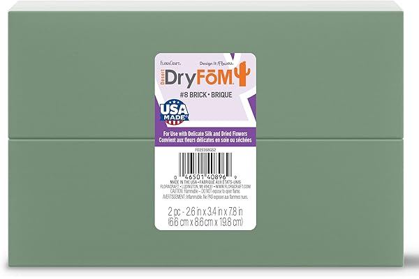FloraCraft Floral Desert DryFōM 2 Piece Brick 2.6 Inch x 3.4 Inch x 7.8 Inch Green