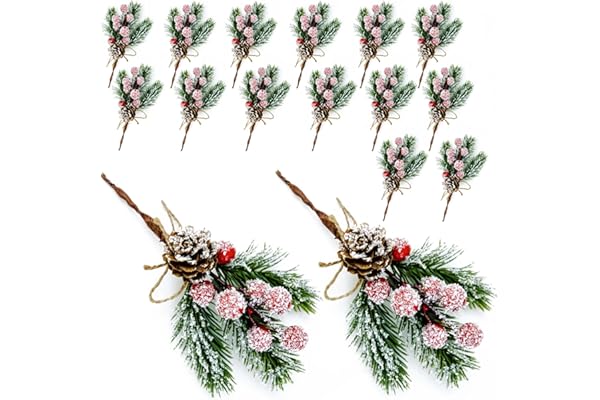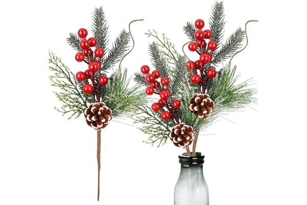Christmas Pine Picks with Red Berries and Pine Cones for Christmas DIY Crafts Gift Wrapping Flower Arrangements Wreaths Holiday Floral Picks Christmas Decorations