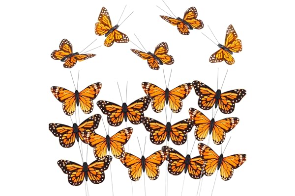 12 Set Halloween Monarch Butterfly Decorations Feather Butterflies Picks Butterflies for Flower Arrangements Butterfly on Wire for Crafts Butterfly DIY Crafts Garland(Orange,4x3 Inch)