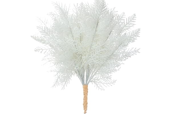 Artificial Pine Needles Christmas Floral Picks Glitter Fake Floral Twig Picks for Flower Greenery Arrangements Tree Home Wreaths Holiday Decor (Glitter White, 20 Pieces)