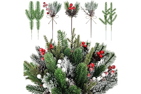 Artificial Green Pine Needles Branches Small Pine Twigs Stems Picks for Christmas Flower Arrangements Wreaths and Holiday Decorations