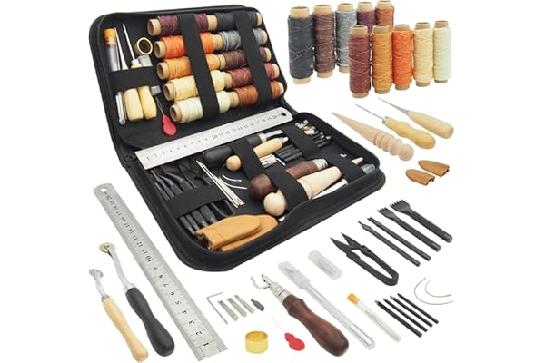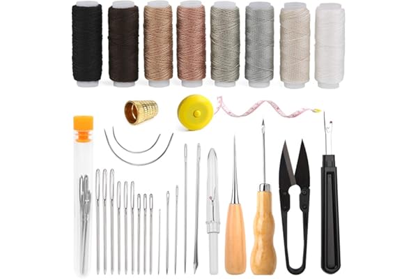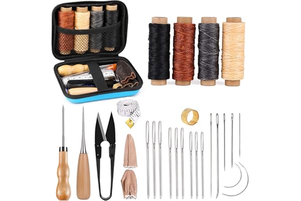 Leather Working Tools and Supplies, Leather Working Kit with Large-Eye Stitching Needles, Waxed Thread, Leather Upholstery Repair Kit, Leather Sewing Tools for DIY Leather Craft