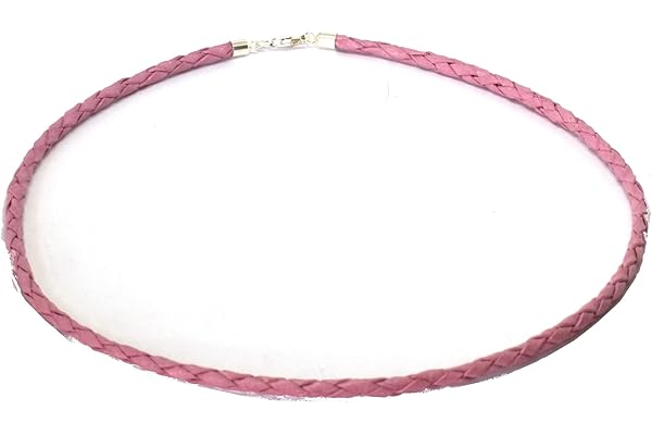 3mm Light Pink Braided Leather Cord Chain Necklace for Men Women with 925 Sterling Silver Clasp Choice Length Made in USA