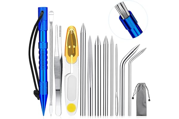 14 Pieces Paracord Tools Paracord FID Needle Set Paracord Stitching Set Stainless Steel Lacing Needles Smoothing Tool Knotter with Marlin Spike for Paracord Work Leather Weaving (Blue)