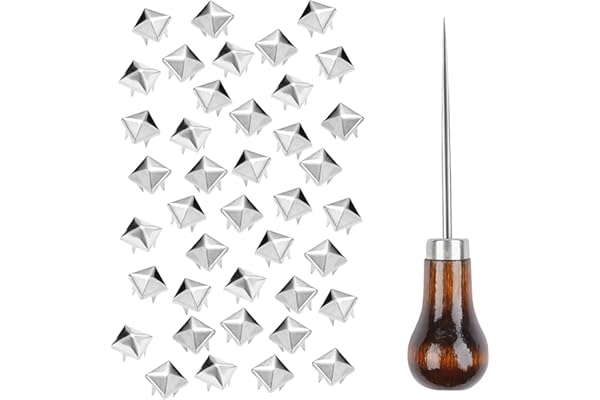 4 Prong Metal Nailhead Studs Spikes Accessories with Awl (Silver)