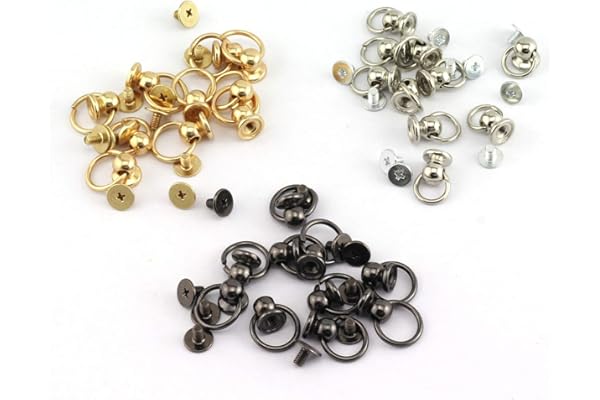 RuiLing 30pcs 8x6mm Screwback Round Head Rivet with Pull Ring 3 Color Assrted Kit Metal Handmade DIY Accessory Nail Heads Stud Leather Craft Screw Rivets (Silver, Black, Gold)