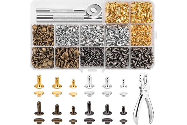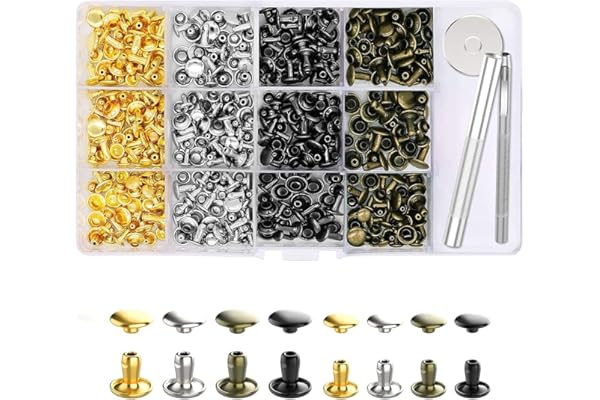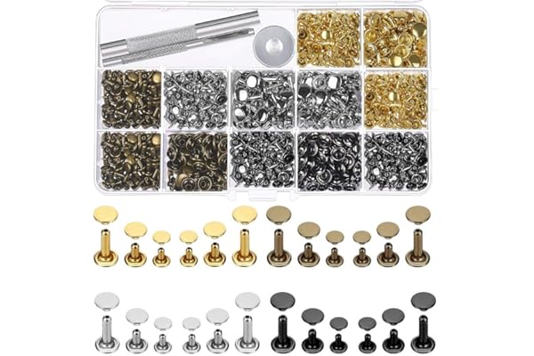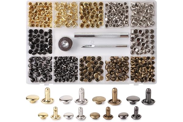 Leather Rivet Kit, 4 Colors 3 Sizes Leather Rivets and Snaps for Leather Crafts, Clothes, Shoes, Leather Boots, Bags, Decoration (Gold, Silver, Bronze and Gunmetal)