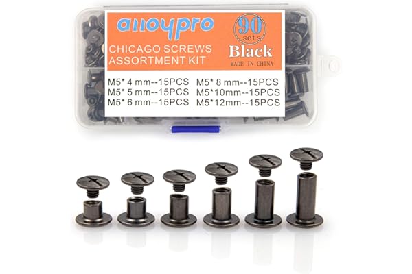 Gun Metal Chicago Binding Screws Assorted Kit Nail Rivet Chicago Button DIY Leather Decoration Bookbinding Round Flat Head Stud Screw ((5 * 4,5 * 5,5 * 6,5 * 8,5 * 10,5 * 12)*15pcs)