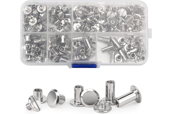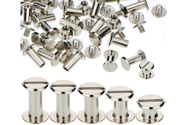 6 Sizes of Round Flat Head Leather Rivets Metal Screw Studs for DIY Leather Craft and Bookbinding (M5 X 4, 5, 6, 8, 10, 12) (Silver)