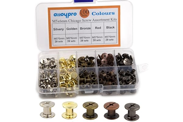 100 Sets Chicago Screws Assorted Kit 5 Color Leather Rivets Screw Rivets Flat Fillister Book Binding Posts Nail Rivet Chicago Bolts for DIY Leather Craft Black Silver Golden Bronze (Colours 5×6mm)