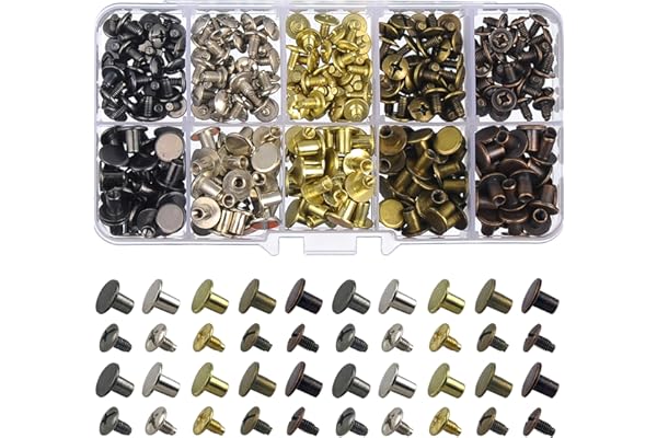 150 Sets Round Flat Head Chicago Screws Buttons Metal Studs Rivets Screwback Spots Metal Nail Rivet Studs for Leather Crafting 5/16 Inch (Mixed in Box)