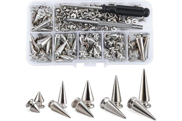 170 Pieces Multiple Sizes Cone Spikes Screwback Studs Rivets Large Medium Small Metal Tree Spikes Studs for Punk Style Clothing Accessories DIY Craft Decoration (Silver)