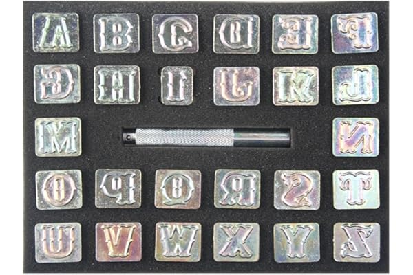 OWDEN Professional 27 Pieces Alphabet Stamp Tool Set for Leathercraft (3/4 Inch, 19 mm Tall), Leather Stamp Tools.