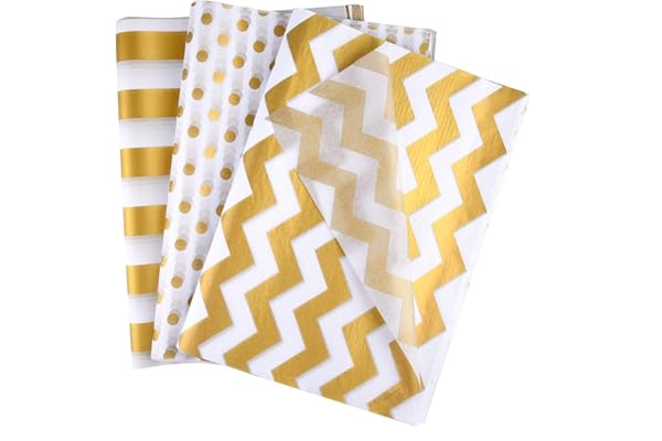 MIAHART 60 Pcs Gold White Tissue Paper Bulk 3 Style Decorative Metallic Wrapping Paper for Gift Bags Birthday Christmas Party Decoration