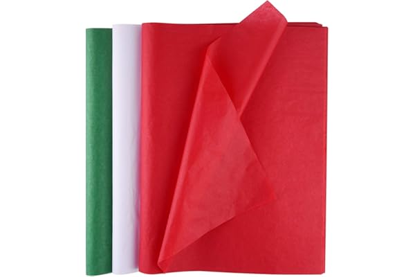 MIAHART 60 Christmas Tissue Paper Sheets 50*35cm Christmas Wrapping Paper for DIY and Craft Gift Bags Decorations (Red, Green, and White)