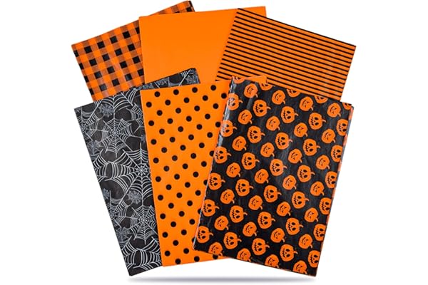 Whaline Halloween Tissue Paper 6 Designs Orange Black Wrapping Paper Pumpkin Spider Web Dot Stripe Art Tissue Craft Paper for Halloween Birthday Party Gift Bag DIY Pompom Confetti