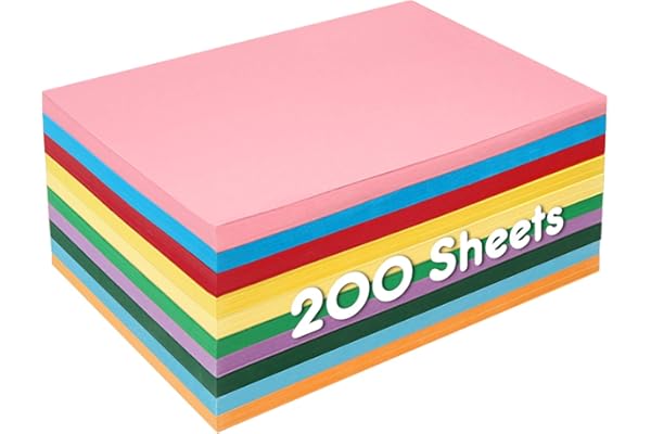 200Sheets Heavy Duty Construction Paper Color Copy Paper for Crafts & Art, A4, 10 Assorted Colors