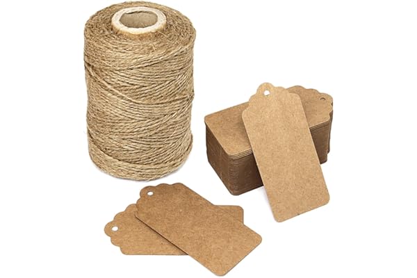 300 Feet Natural Jute Twine and 100PCS Brown Retangle Kraft Paper Gift Tags for Crafts & Price Tags Lables by Blisstime
