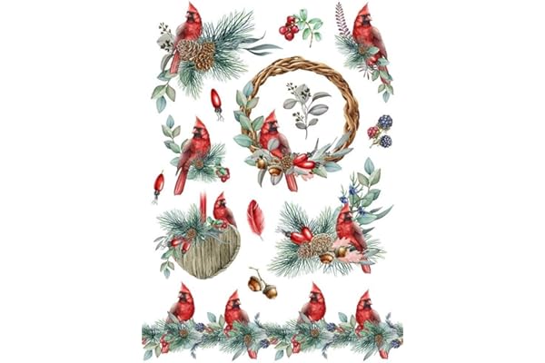 Rice Paper for Decoupage A4 Merry Christmas (Red Cardinal - 2 Sheets)