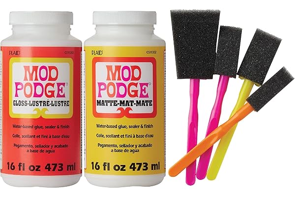 Mod Podge Complete Decoupage Kit-Two 16oz Bottles Waterbase Sealer/Glue (Matte Gloss Finish) with 4-pk Foam Brush Set