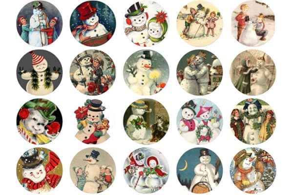 Assorted Vintage Christmas Snowman Circles 1 1/2" Circles Collage Sheet