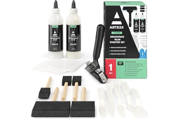 1 Gloss-Finish Glue and 1 Matte-Finish Glue, 8-oz Bottles, Foam Brushes, Plastic Spreader Tools, Gloves, Art Supplies for Paper Crafting, Scrapbooking, and Decorating