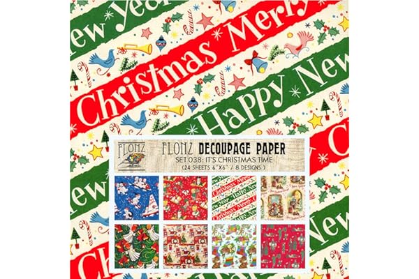 Decoupage Paper Pack (24 Sheets 6"x6") It's Christmas Time! # Vintage Styled Pattern Paper for Decoupage