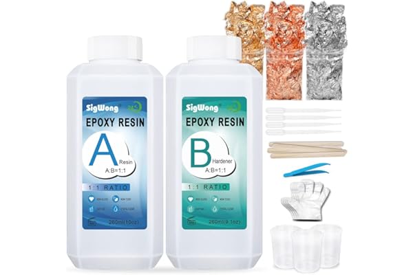 2 Part Casting Resin for Art, Craft, Jewelry Making, River Tables, Bonus Gloves, Measuring Cup, Wooden Sticks, Dropper, Gold Foil Flakes and Tweezers