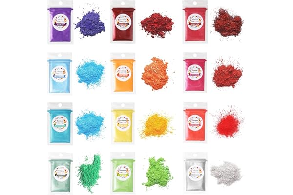Mica Powder - 24 Jars of Pigment for Paint, Dye, Soap Making, Nail Polish, Epoxy Resin, Candle Making, Bath Bombs, Slime