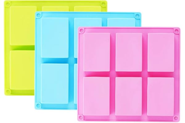 6 Cavities Rectangle Silicone Soap Molds for Homemade Craft Soap Mold, Cake Mold, Chocolate Mold & Ice Cube Tray(Blue & Purple & Pink)
